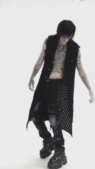 .Black Studded Sleeveless Longline Vest