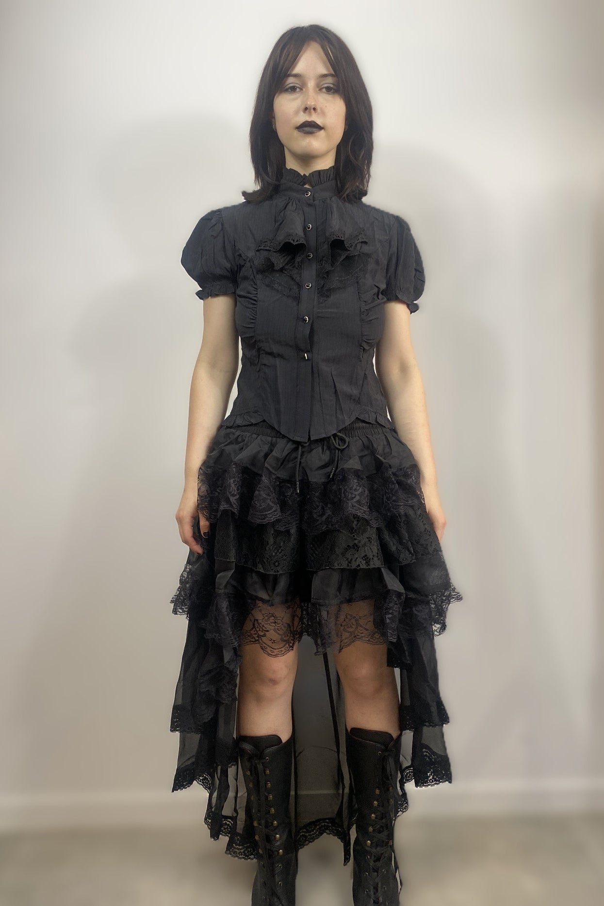 You can style it with a corset or simple black top. It’s not see-through, but the sheer edges give it some shape. Works well for events or just when you want something dramatic but comfortable.
