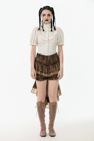 Miss Harlow’s Ruffle Blouse – Vintage Cream Puff Sleeve Steampunk Top