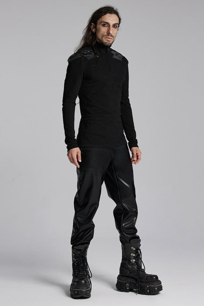 Fitted long sleeve top reinforced with tactical shoulder panels — built for dark streetwear, cyberpunk, techwear, or futuristic looks.