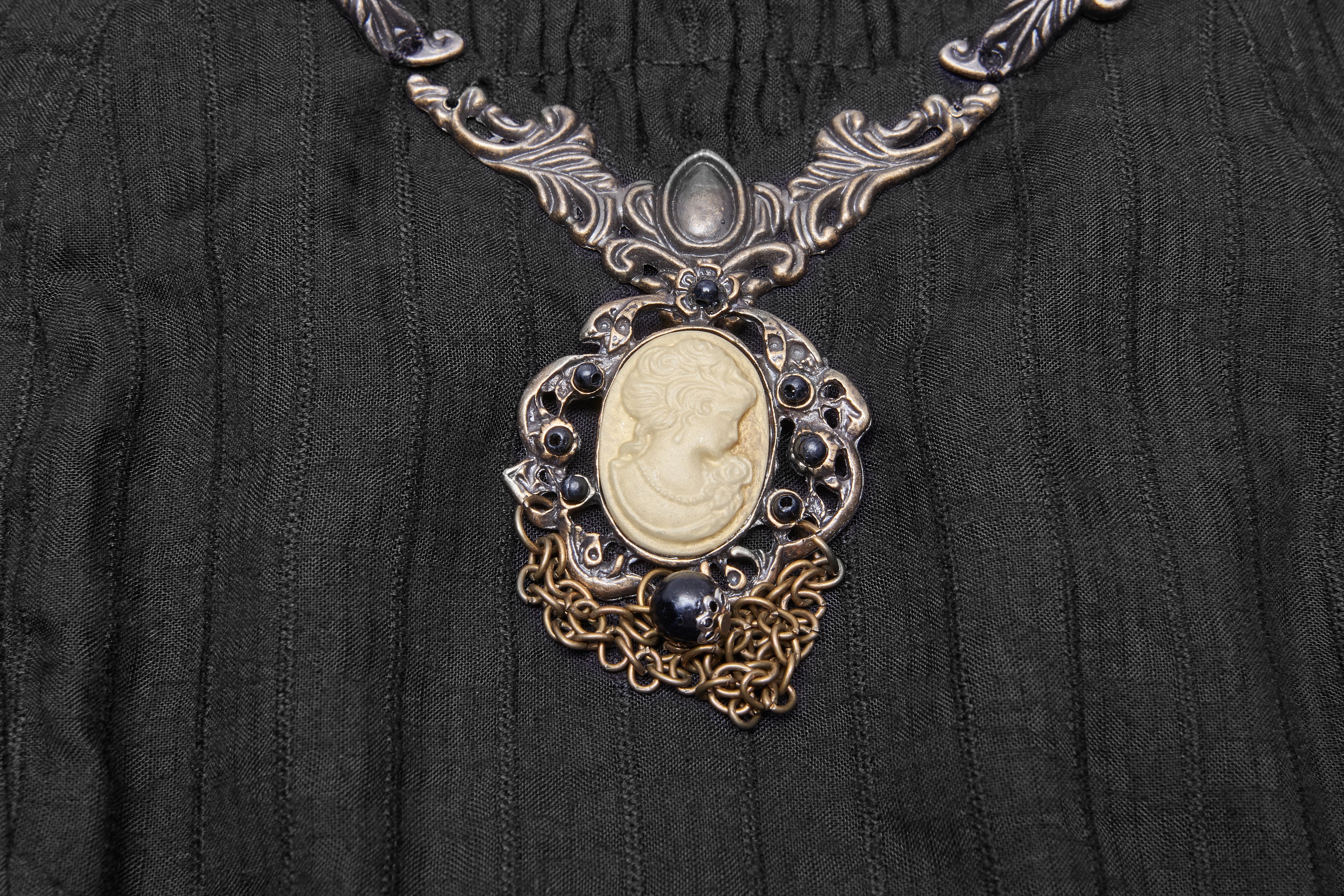 • Antique cameo and bronze metal detail